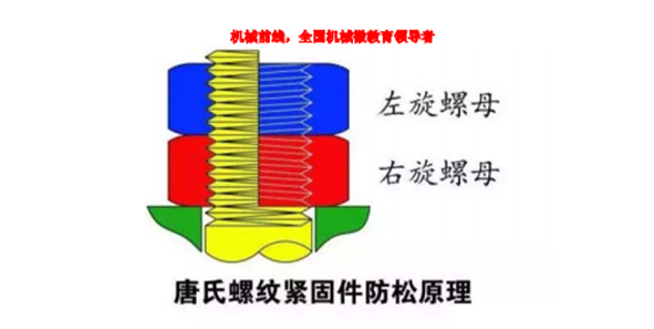 從螺紋防松角度來(lái)看,偏心螺母依靠增大摩擦力防松,依然屬于傳統(tǒng)防松方式。在沖擊振動(dòng)的條件下,螺母仍會(huì)克服摩擦力而松脫。而唐氏螺紋緊固件是純結(jié)構(gòu)防松,利用左旋和右旋螺紋自身的矛盾來(lái)防松,突破了傳統(tǒng)螺紋的防松概念,是螺紋防松領(lǐng)域的重大突破。
